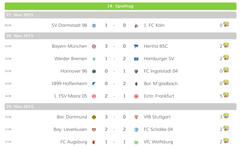 Also der zweite Spieltag ist jetzt ausgewertet. Die Ergebnisse bzw. der Spielstand ist in der Tabelle rechts abzulesen. Ich werden mich bemühen in den nächsten Tagen noch eine bessere Darstellung der Tipps zu erzeugen oder zumindest eine kleine Anleitung zu erstellen, wie man die Tipps am besten einsehen kann. Die Auswertung hat leider etwas gedauert,…