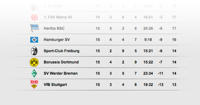 Hoppla, lange nicht ausgewertet und siehe da, ich habe diesmal mit dem RoBot zusammen den Spieltag gewonnen. Markus hat die Herbstmeisterschaft der menschlichen Tipper gewonnen – ansonsten hält sich der Roboter noch an der Spitze. Ich denke, zur Rückrunde werden ich den netten aber nervigen Roboter auf den Schrott verbannen. Dann werden wir hoffentlich auch wieder ein paar neue Mittipper begrüßen.